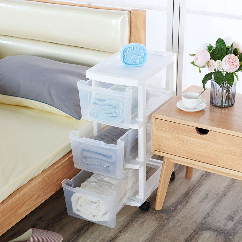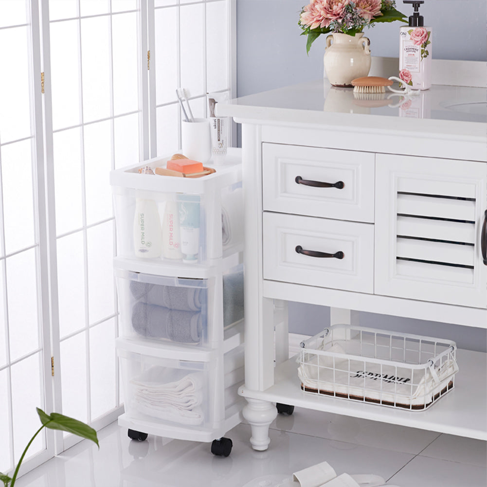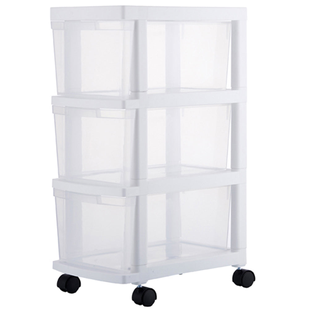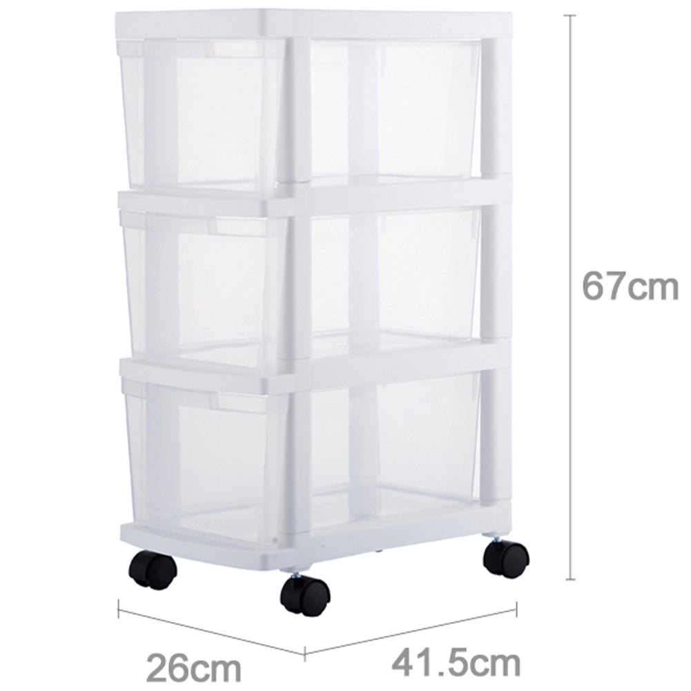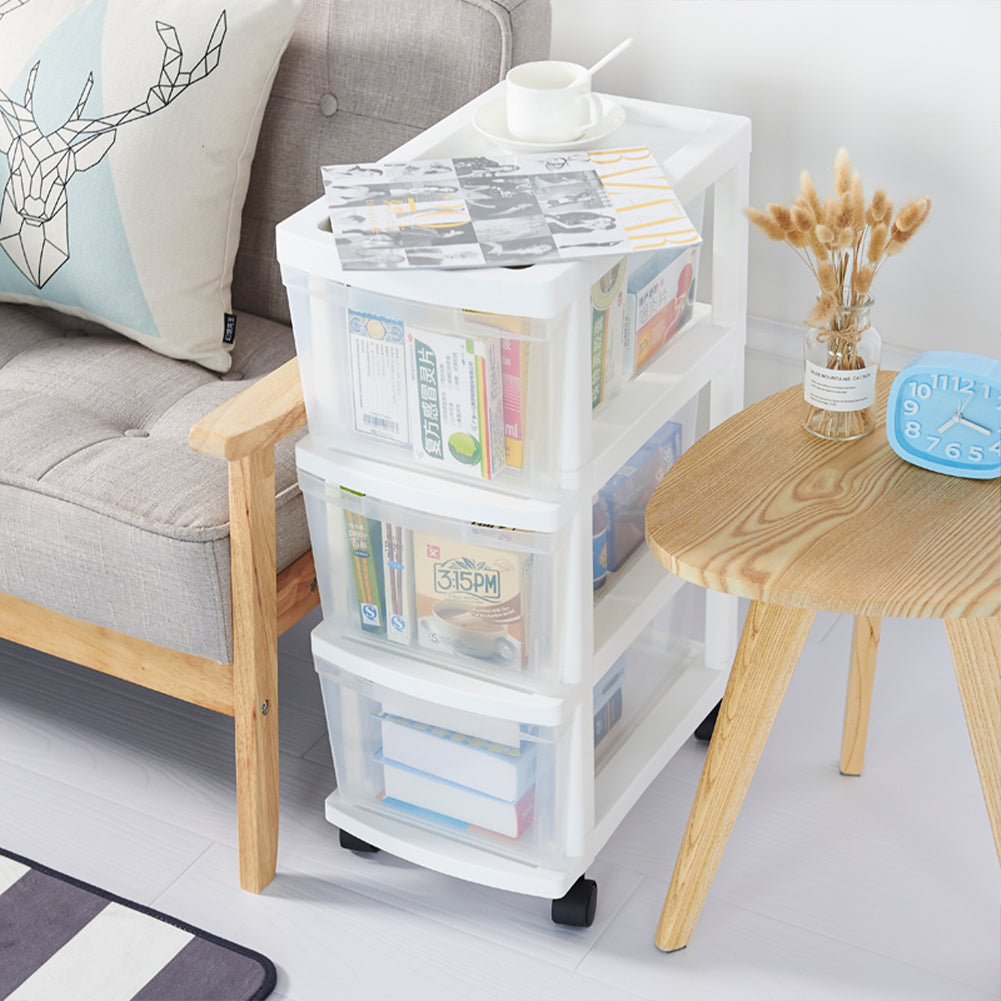 1 x Carrello Cassettiera Portaoggetti Salvaspazio con 3 Ripiani Trasparenti e Ruote