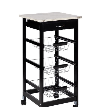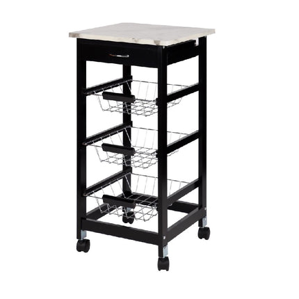 Carrello Cucina Salvaspazio Legno 3 Cestelli Acciaio Top Effetto Marmo
