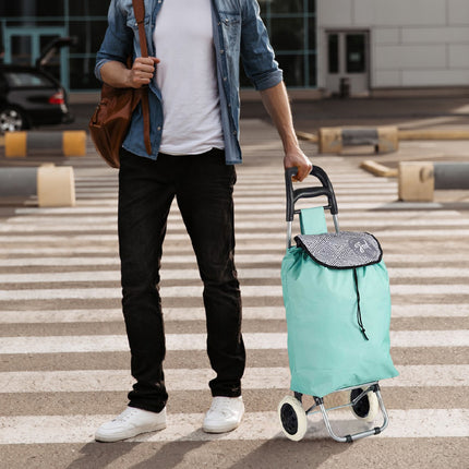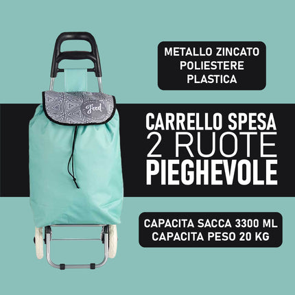 Carrello Portaspesa 2 Ruote e Maniglia in Metallo Zincato Antipioggia Verde