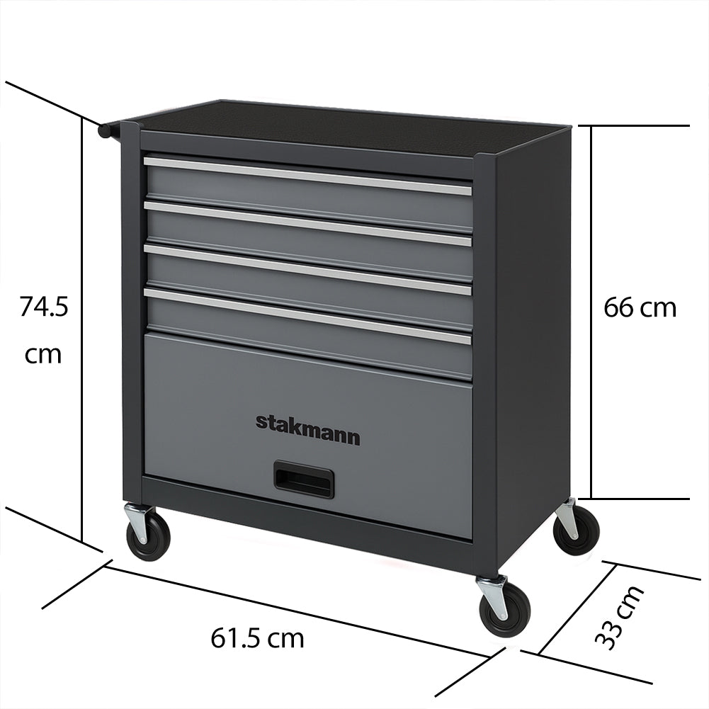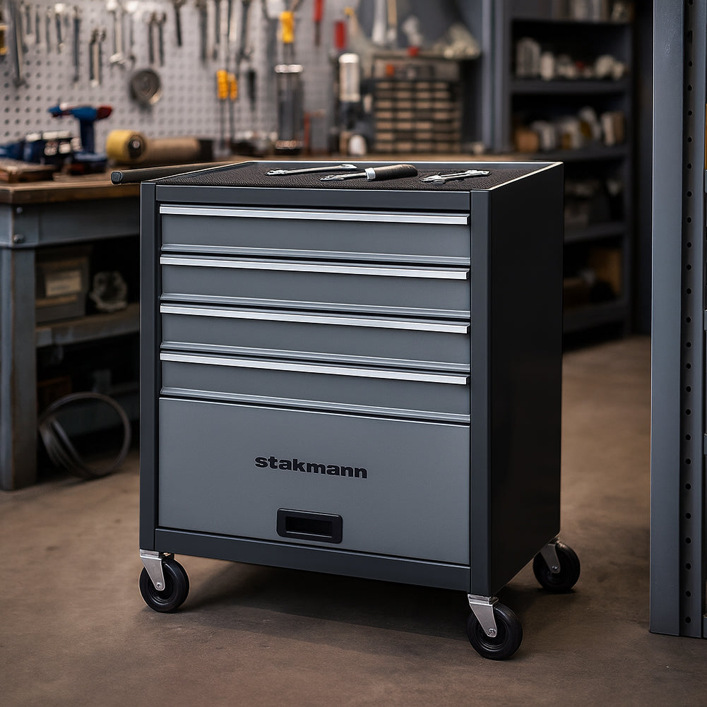 Questo carrello portautensili offre una gestione impeccabile degli strumenti grazie ai suoi 4 cassetti scorrevoli su guide a sfera con apertura totale e un vano inferiore con sportello dedicato.