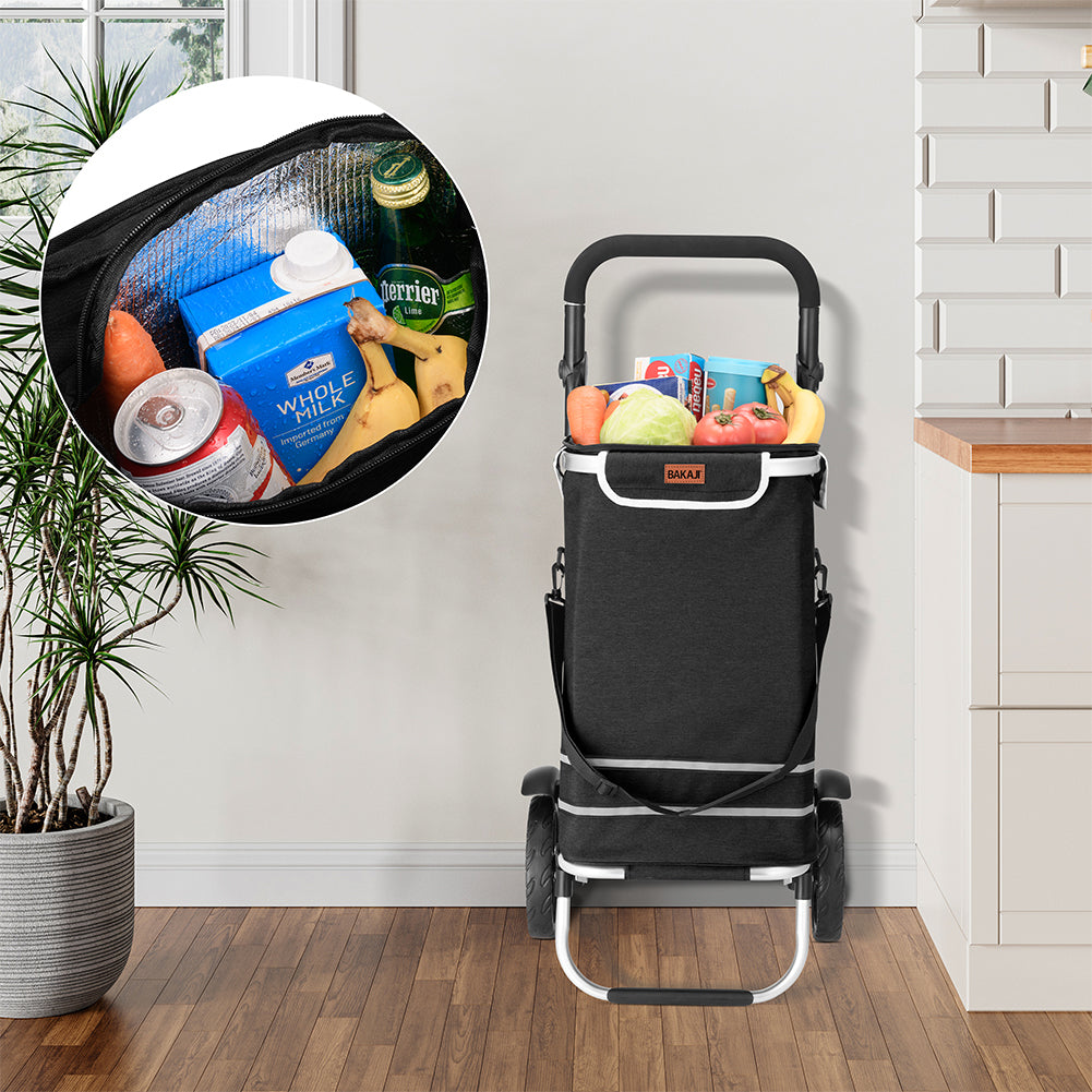 1 x Carrello Spesa Pieghevole 56L Nero Borsa Termica Trolley Portaspesa con Tracolla