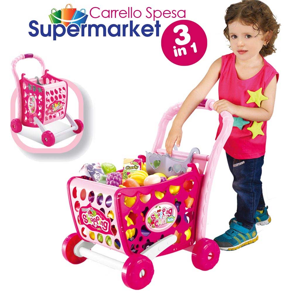 Carrello Spesa Supermarket per Bambina Colore Rosa con Frutta e Verdura 3in1 New