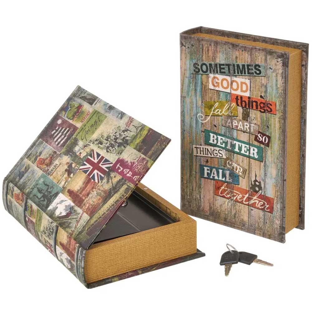 Cassaforte di Sicurezza Forma Libro con Due Chiavi Porta Valori Segreto Metallo