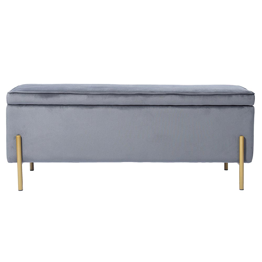 1 x Cassapanca Pouf Contenitore Panca Sgabello Poggiapiedi in Tessuto Velluto Grigio