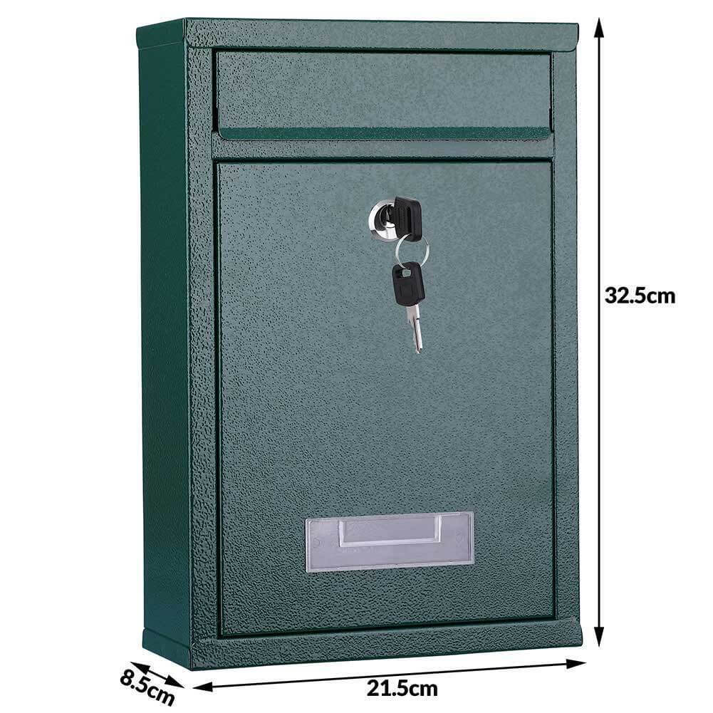 Cassetta Postale Parete in Acciaio Buca Lettere Posta Esterno con Chiave Verde