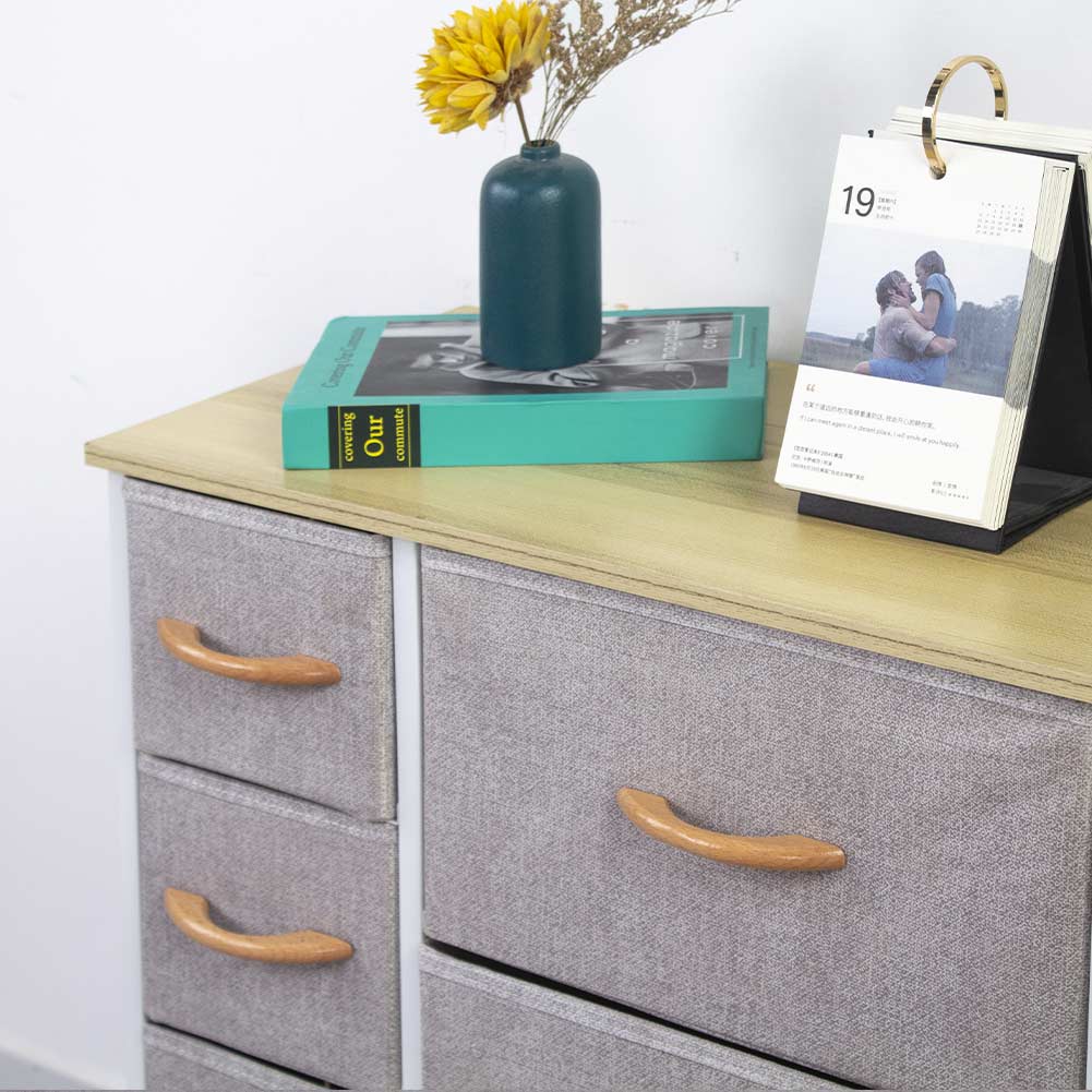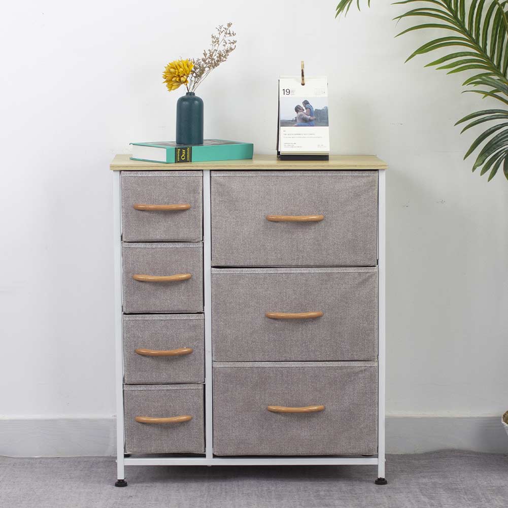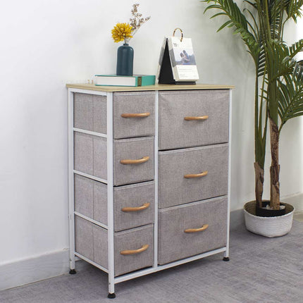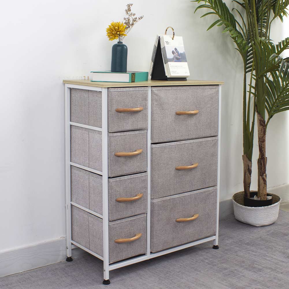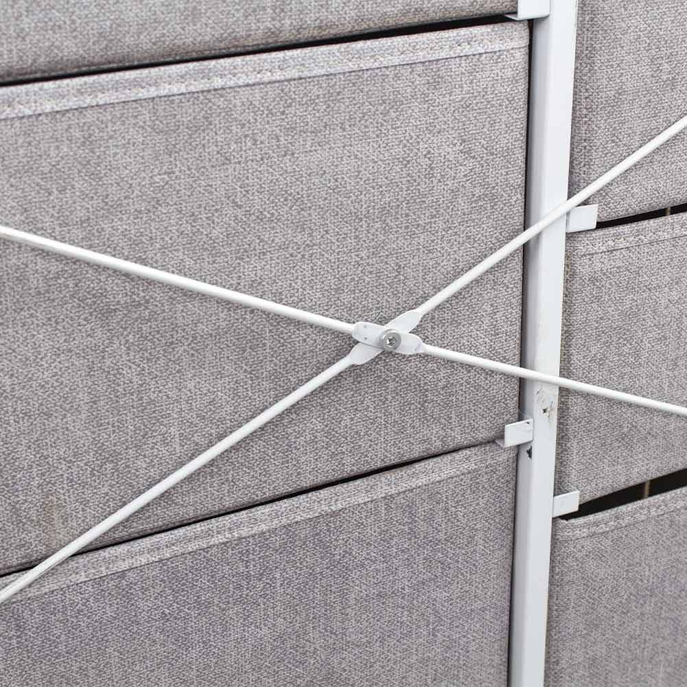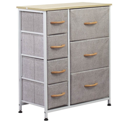 Cassettiera Capiente 7 Cassetti Mobiletto Robusto Tessuto Grigio Chiaro e Bianco