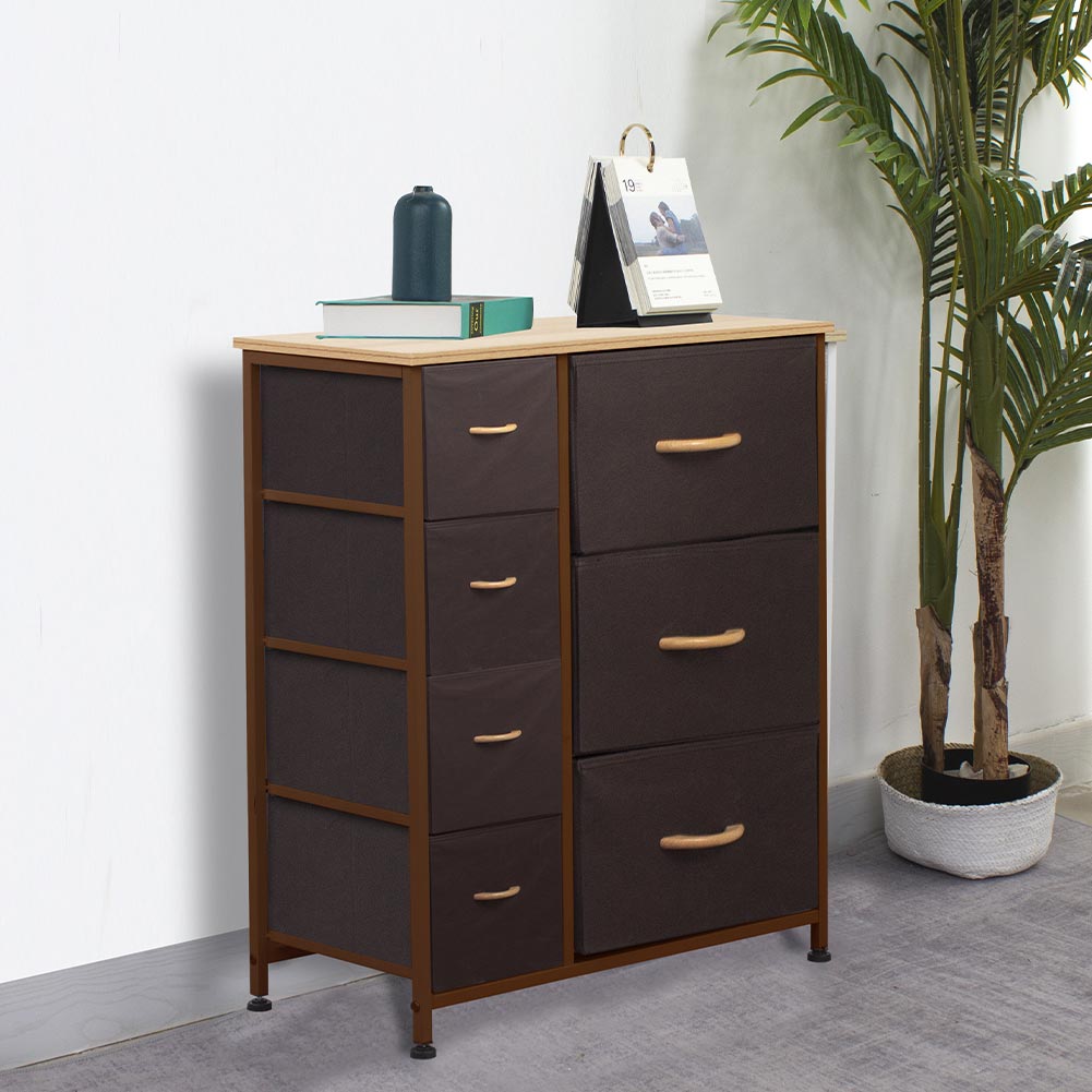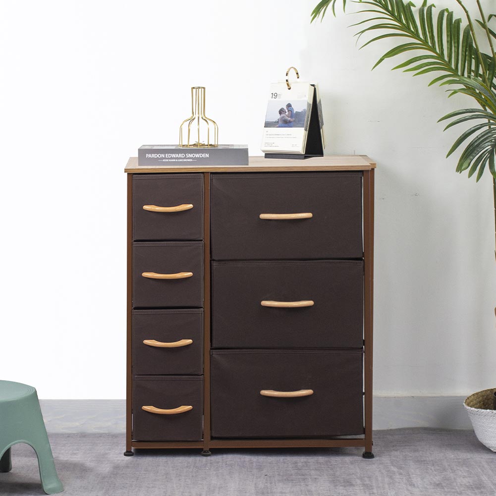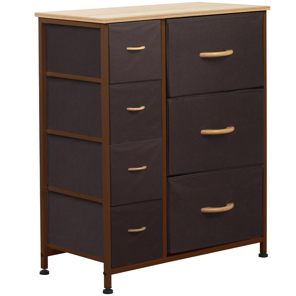 Cassettiera Capiente 7 Cassetti Mobiletto Tessuto Marrone Chiaro Marrone Scuro