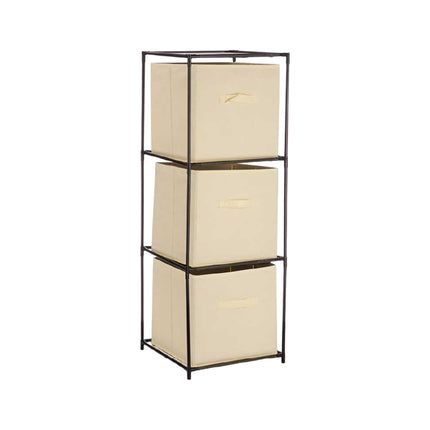 Cassettiera Multiuso 3 Cassetti Metallo e Stoffa 35x35x102cm Beige Salvaspazio