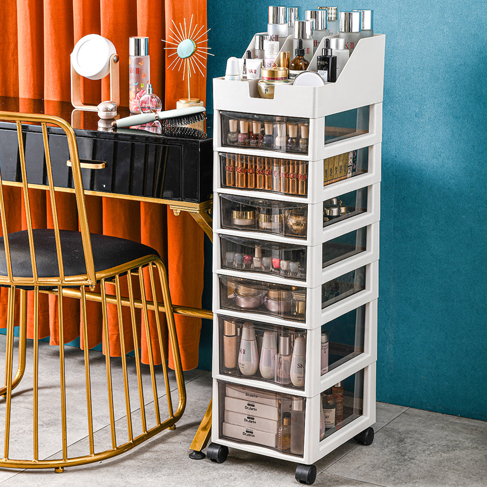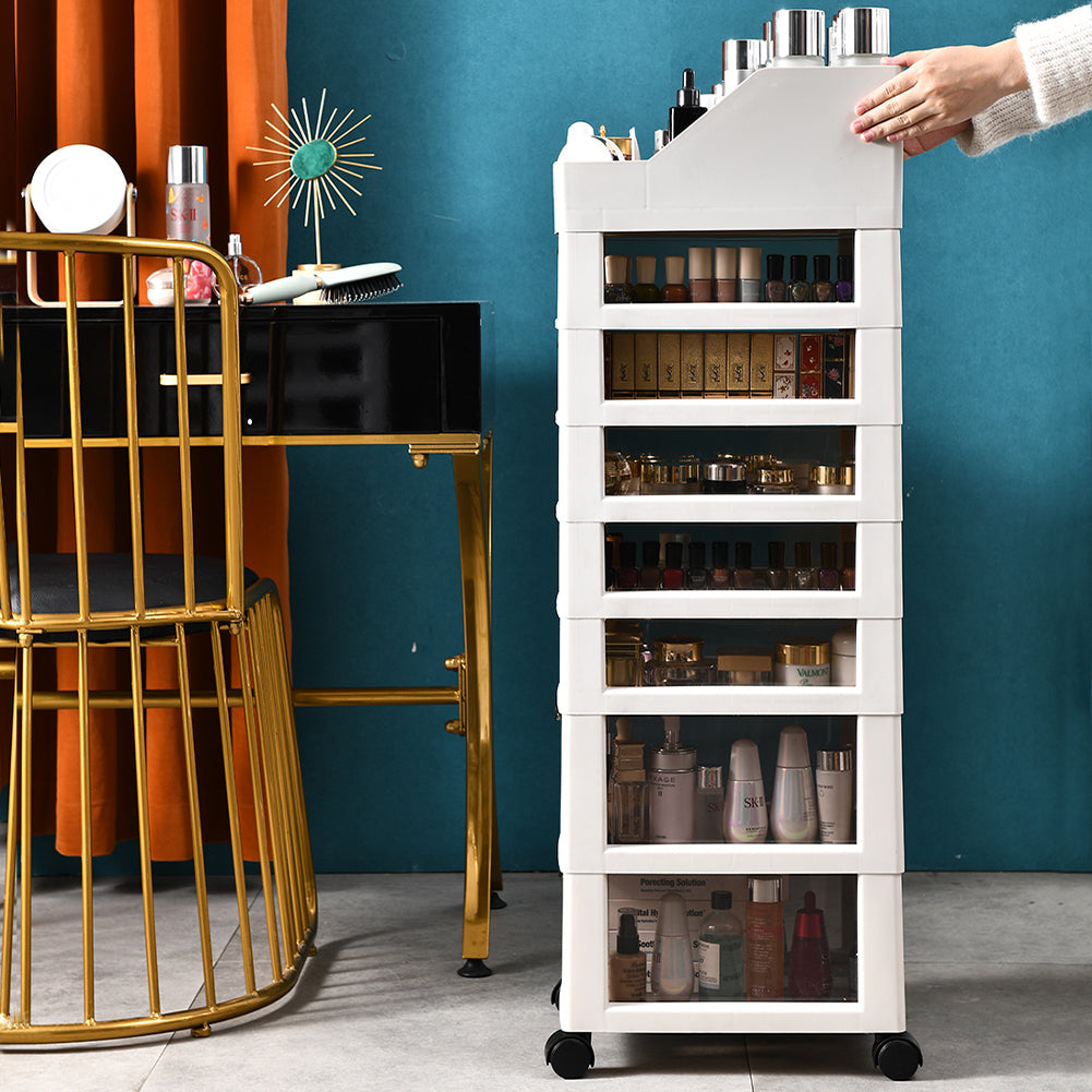 1 x Cassettiera Salvaspazio Carrello Portaoggetti in Polipropilene 8 Ripiani Bianco