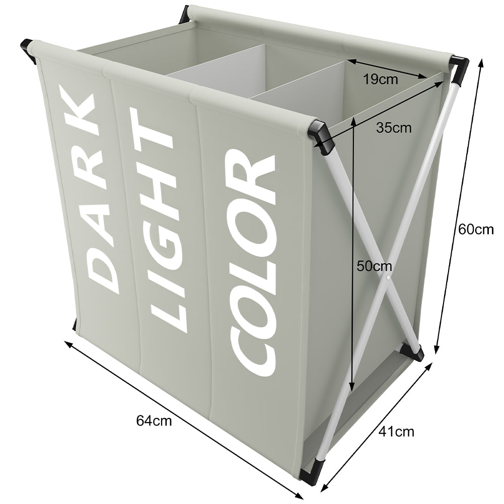 Dividi e conserva la biancheria sporca in questo bellissimo Cesto portabiancheria a 3 scomparti per la biancheria chiara, scura e colorata !