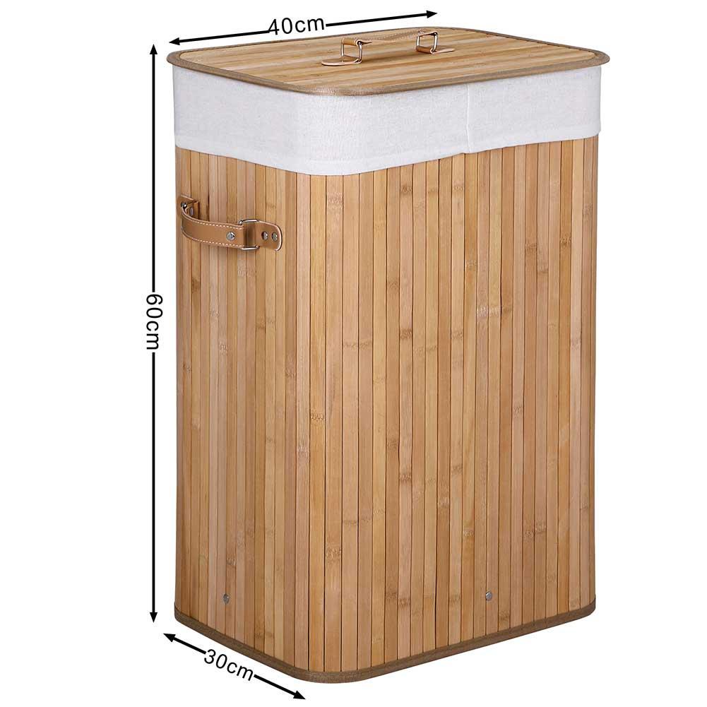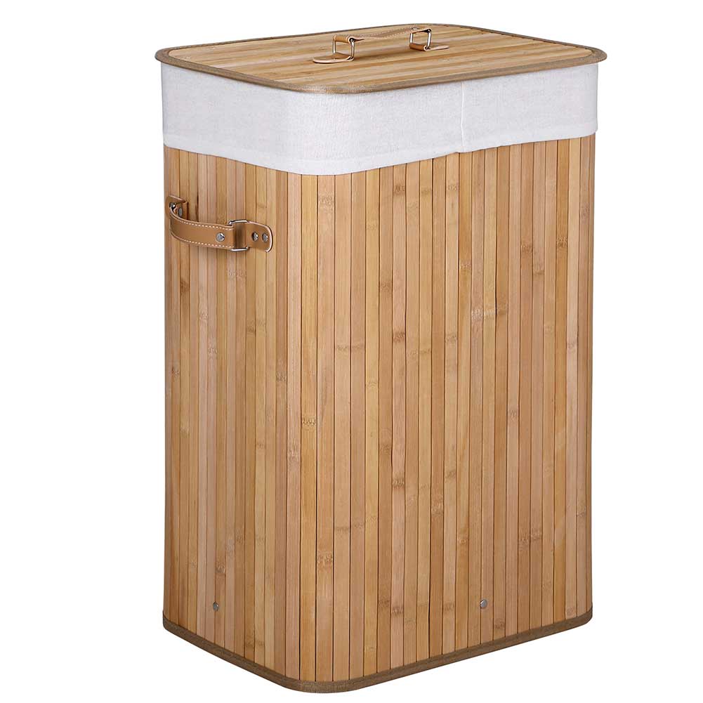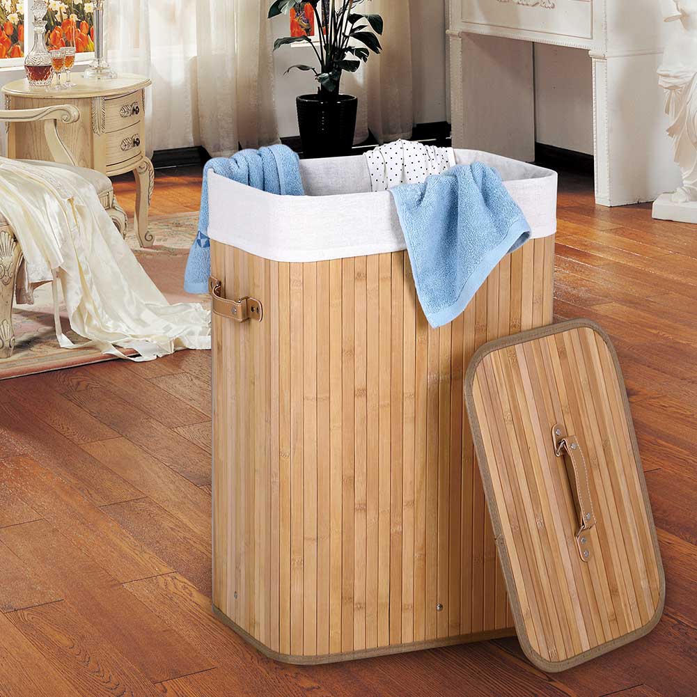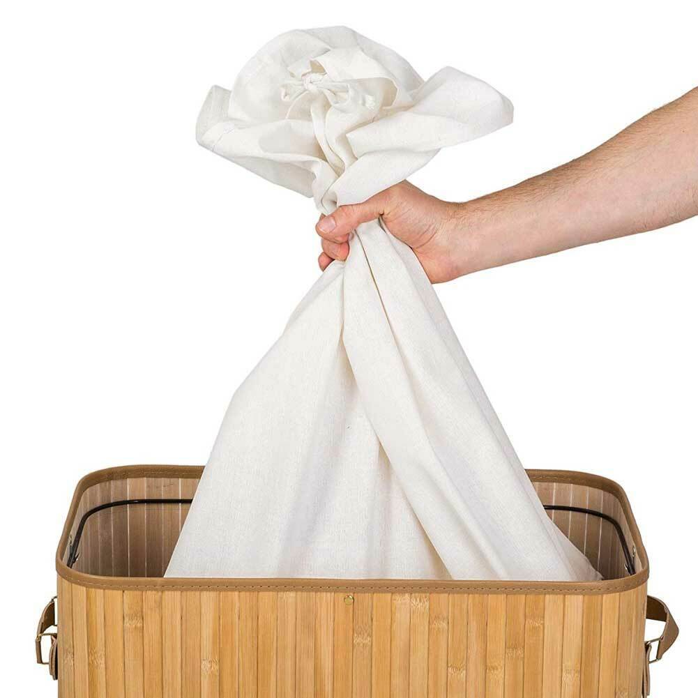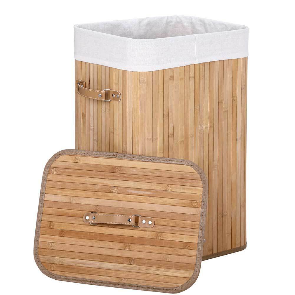 Cesto Biancheria Sporca Pieghevole in Bambu e Tessuto Portabiancheria con Manici