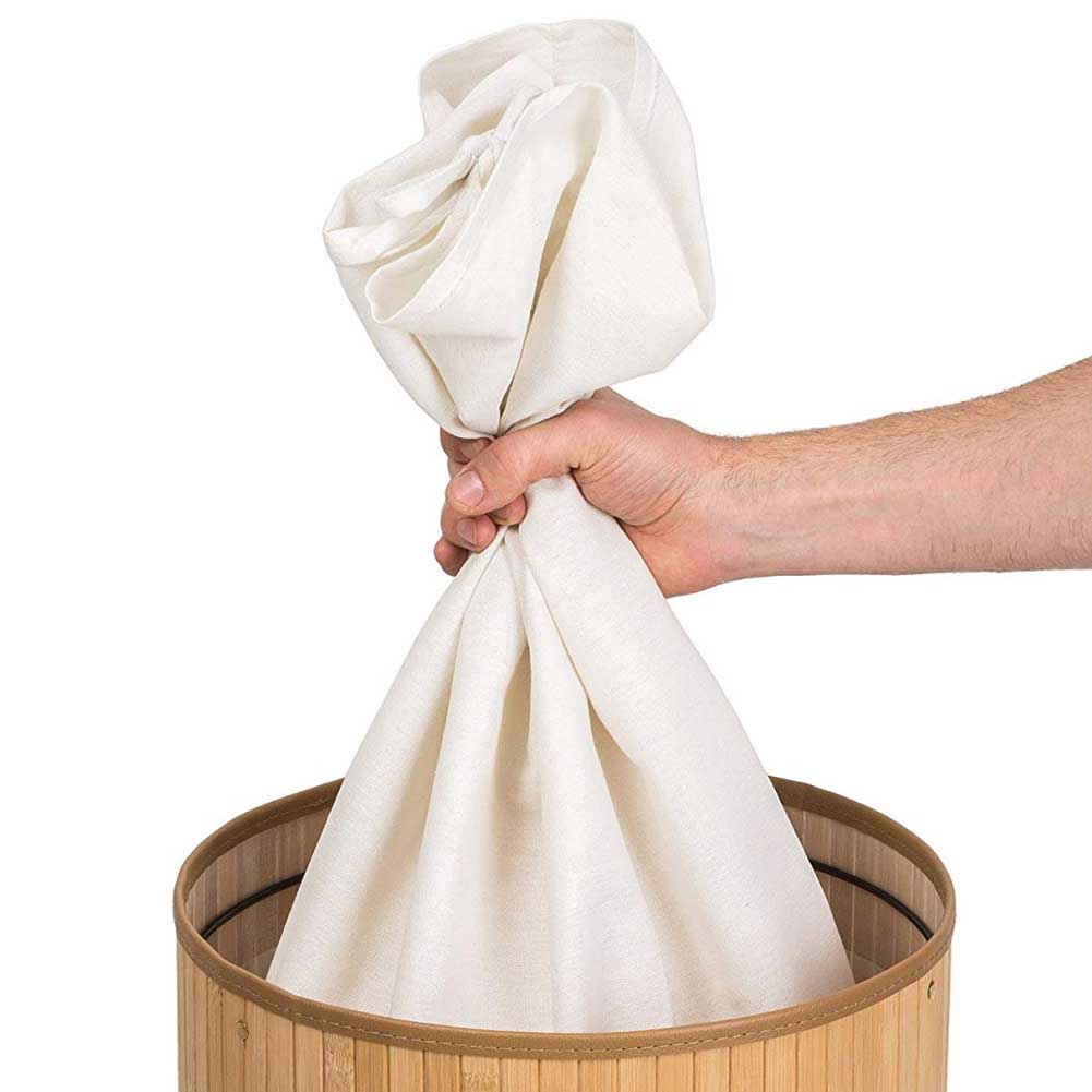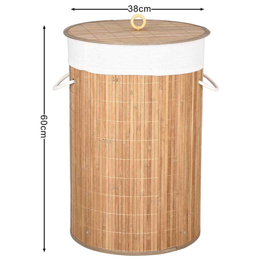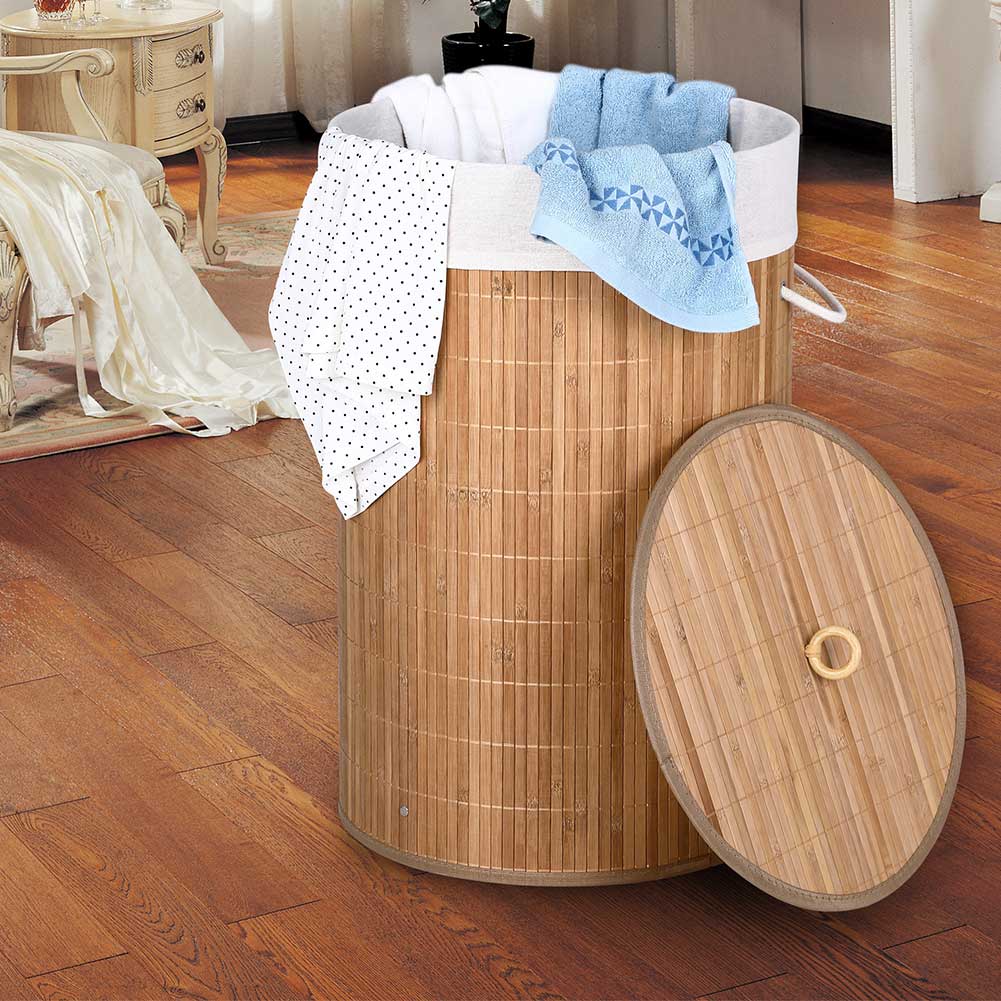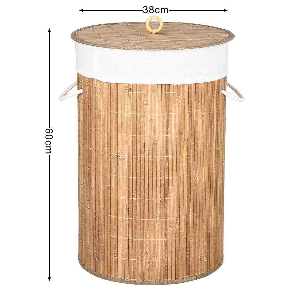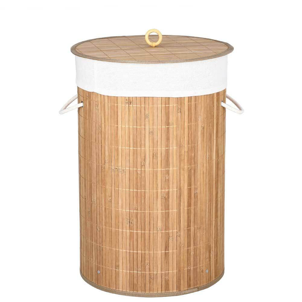 Cesto Biancheria Sporca Pieghevole in Bambu e Tessuto Portabiancheria con Manici