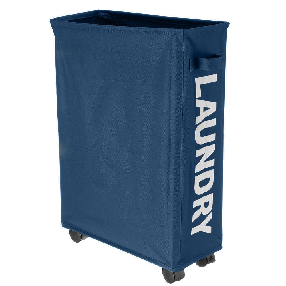 Cesto Biancheria Sporca Pieghevole in Tessuto Portabiancheria con Ruote Blu