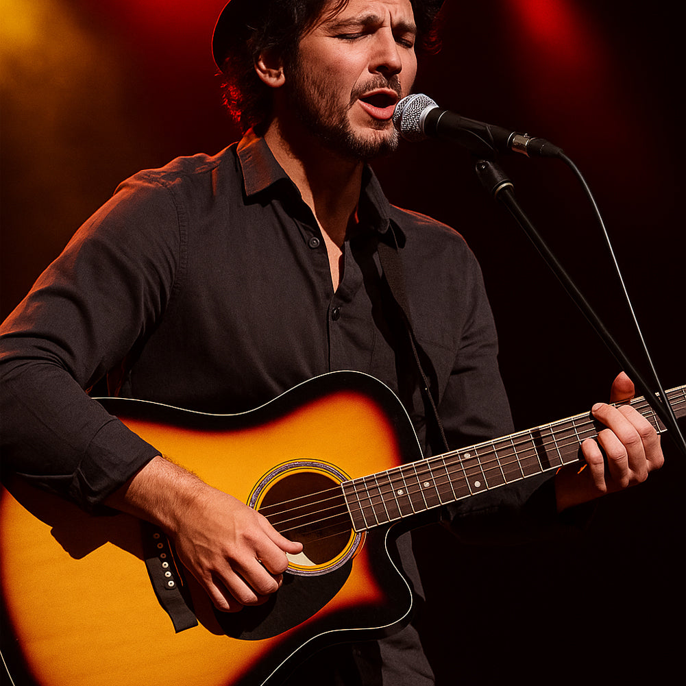 Ideale per concerti live, registrazioni o prove amplificate, unisce la potenza dell’acustica alla versatilità dell’elettrica.