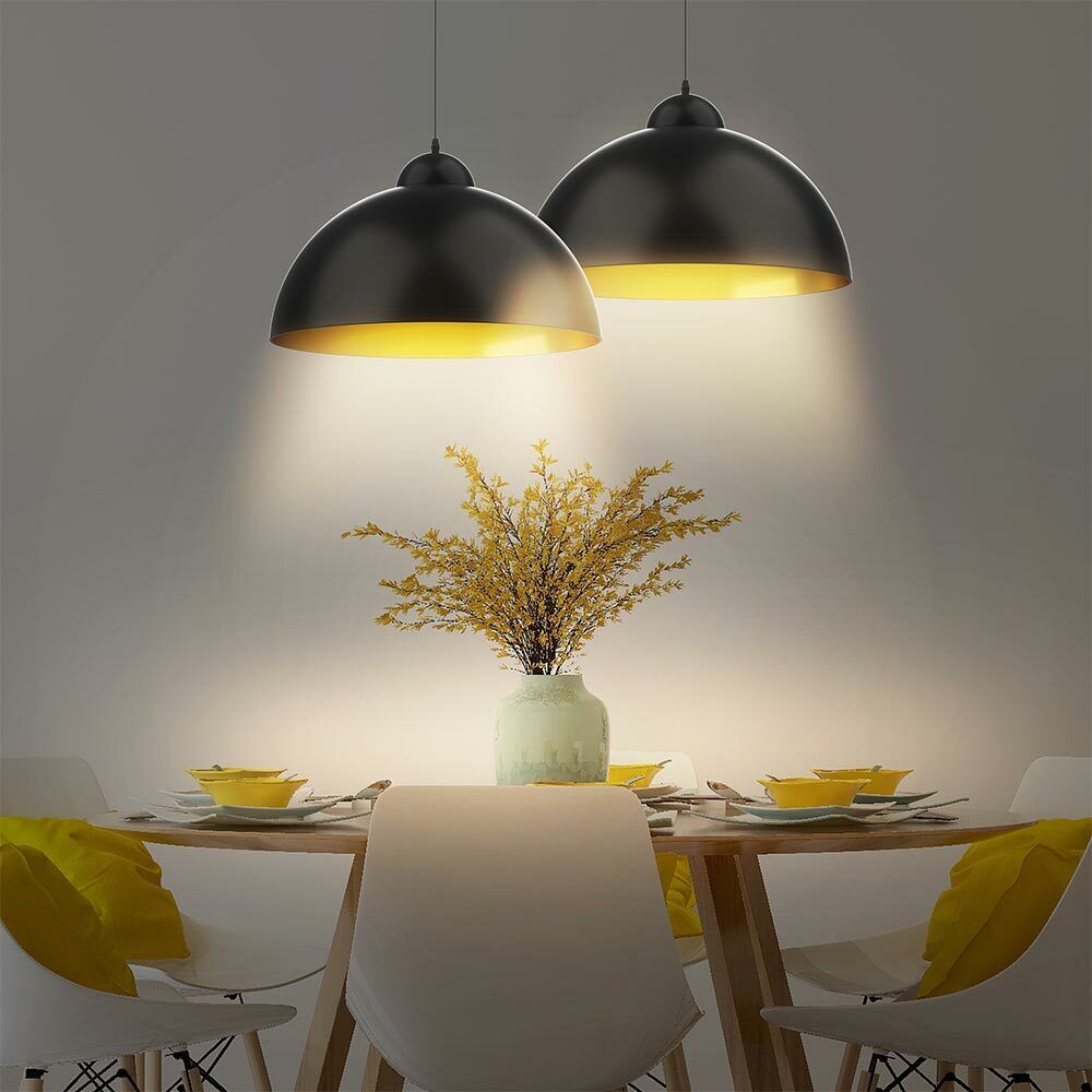 Coppia Lampadari Sospensione Moderno Design Industriale Lampada Metallo Nero Oro