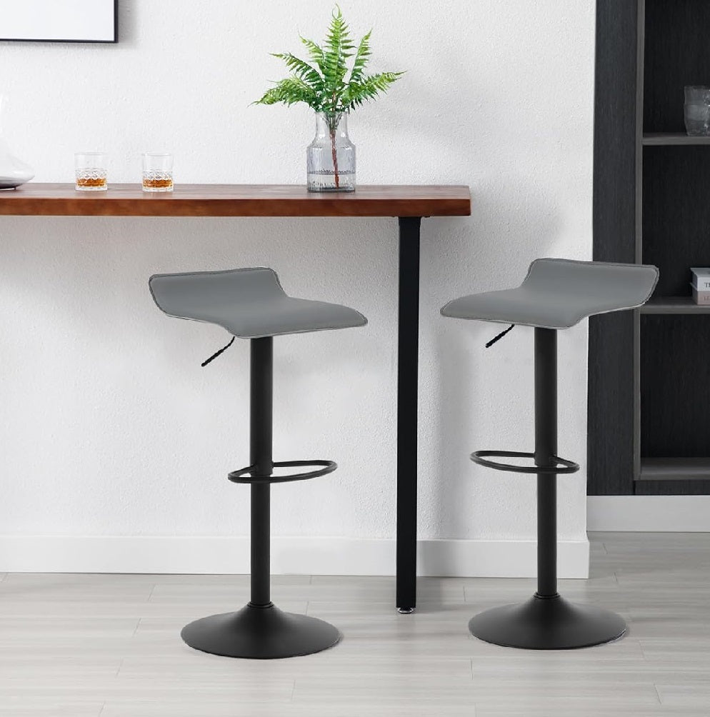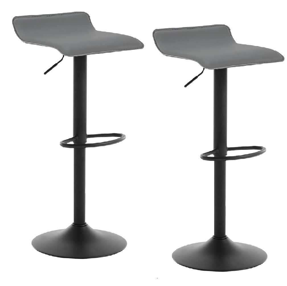 Coppia Sgabelli Cucina Bar Bistrot Pelle Imbottita Poggiapiedi Nero Grigio