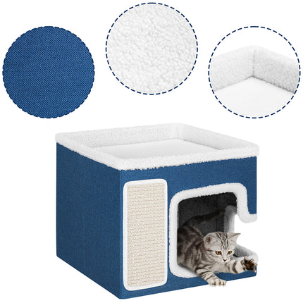 1 x Cuccia Casa per Gatti Blu Tiragraffi Casetta Animali Domestici 42x42x33 cm