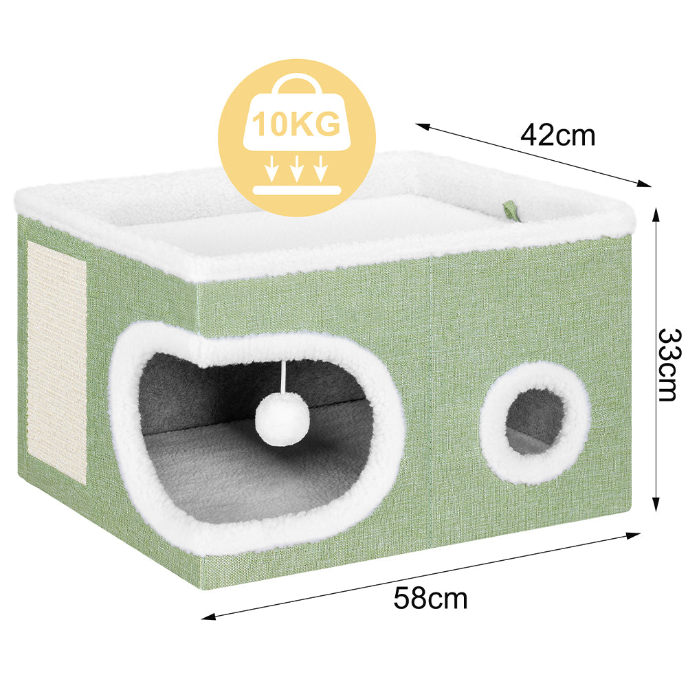 1 x Cuccia Casa per Gatti Cubo Verde Tiragraffi Casetta Animali Domestici 58x42x33cm