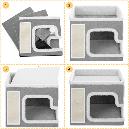 1 x Cuccia Casa per Gatti Grigio Tiragraffi Casetta Animali Domestici 42x42x33 cm