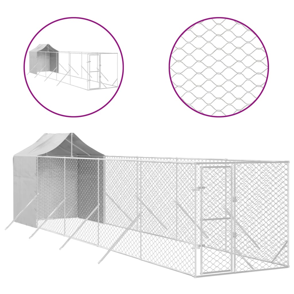 Cuccia per Cani Gatti Recinto da Esterno Tetto Argento 2x10x2,5m Acciaio Zincato