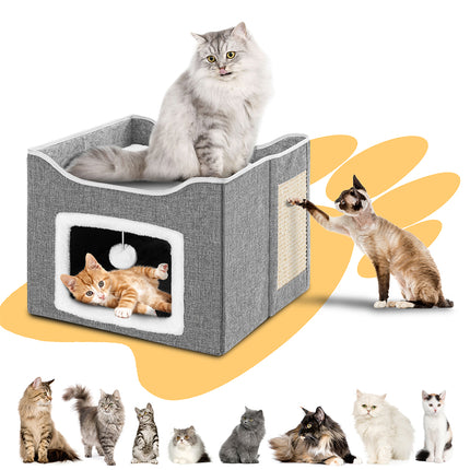 Design Multifunzionale e Spazioso: Questa cuccia per gatti a quattro fori quadrati offre ampio spazio per il relax e il gioco del tuo gatto.