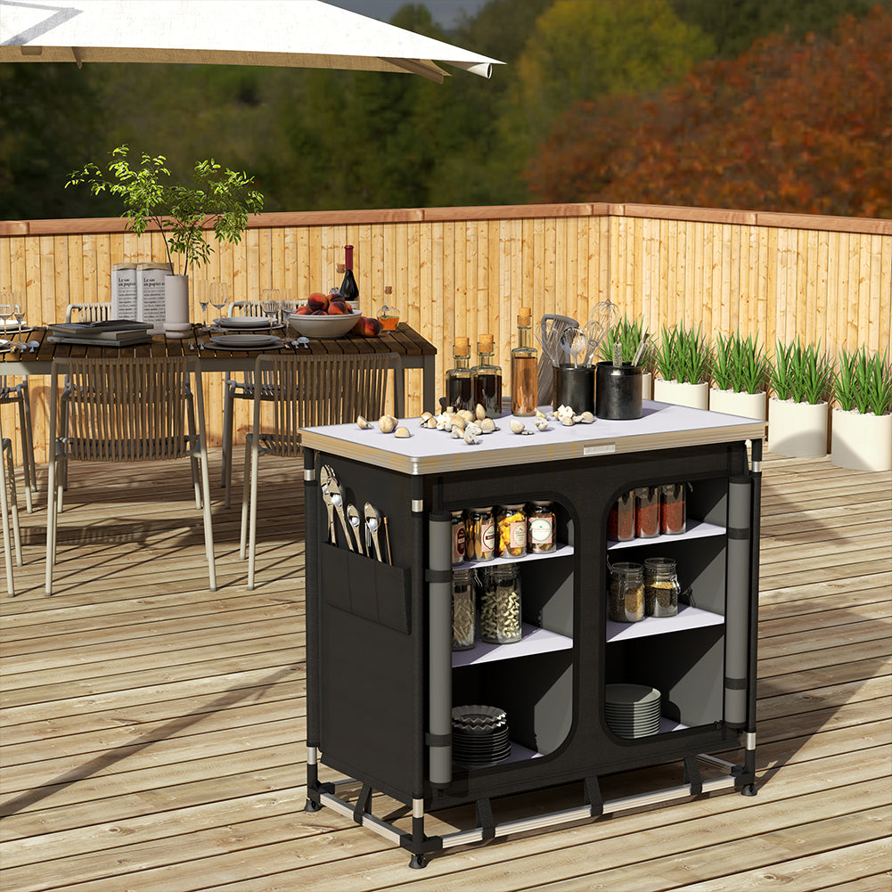 1 x Cucina Da Campeggio Pieghevole In Alluminio Con Cucinotto Nero