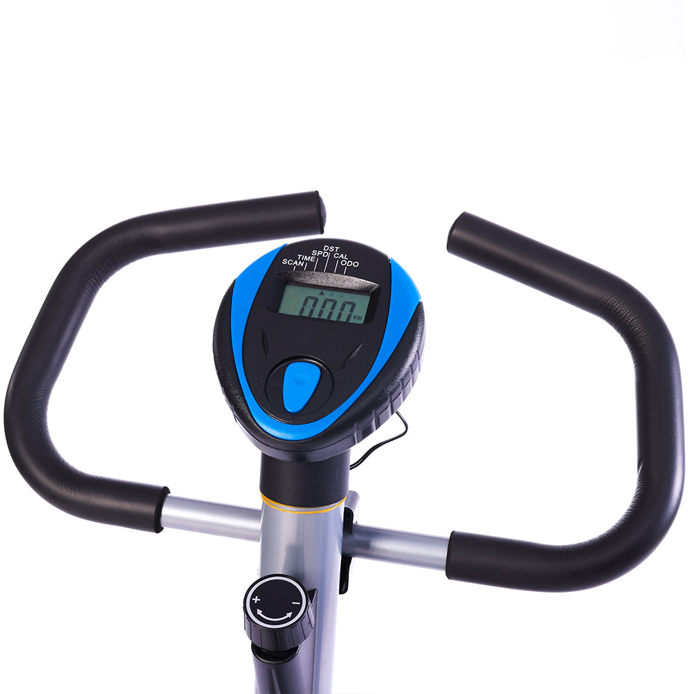 Fornita di mini display digitale dove vengono riportati: il consumo di calorie, scansione, la distanza percorsa, il tempo d'allenamento e la velocità d'andatura, grazie a questo pratico computer potrete tenere sempre sotto controllo l'andatura del vostro allenamento, così da facilitare il raggiungimento del vostro obiettivo prefissato, inoltre grazie ai sensori cardiaci posizionati sul manubrio della cyclette potrete tenere sotto controllo anche il vostro battito.