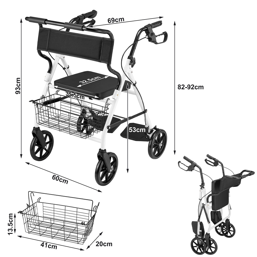 1 x Deambulatore Rollator Sedile Anziani Disabili Seduta Imbottita Ausilio Camminata