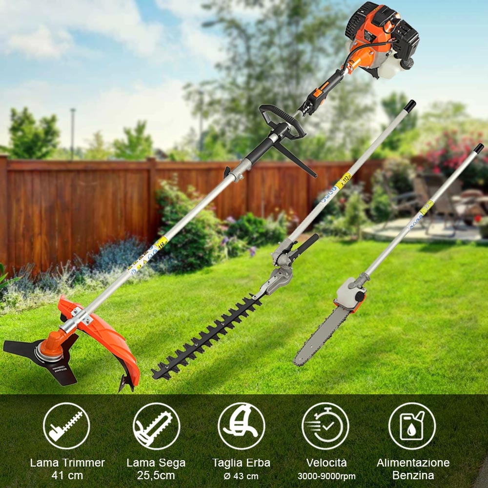 5 in 1 decespugliatore, potatore, motosega, tagliasiepi, tagliaerba