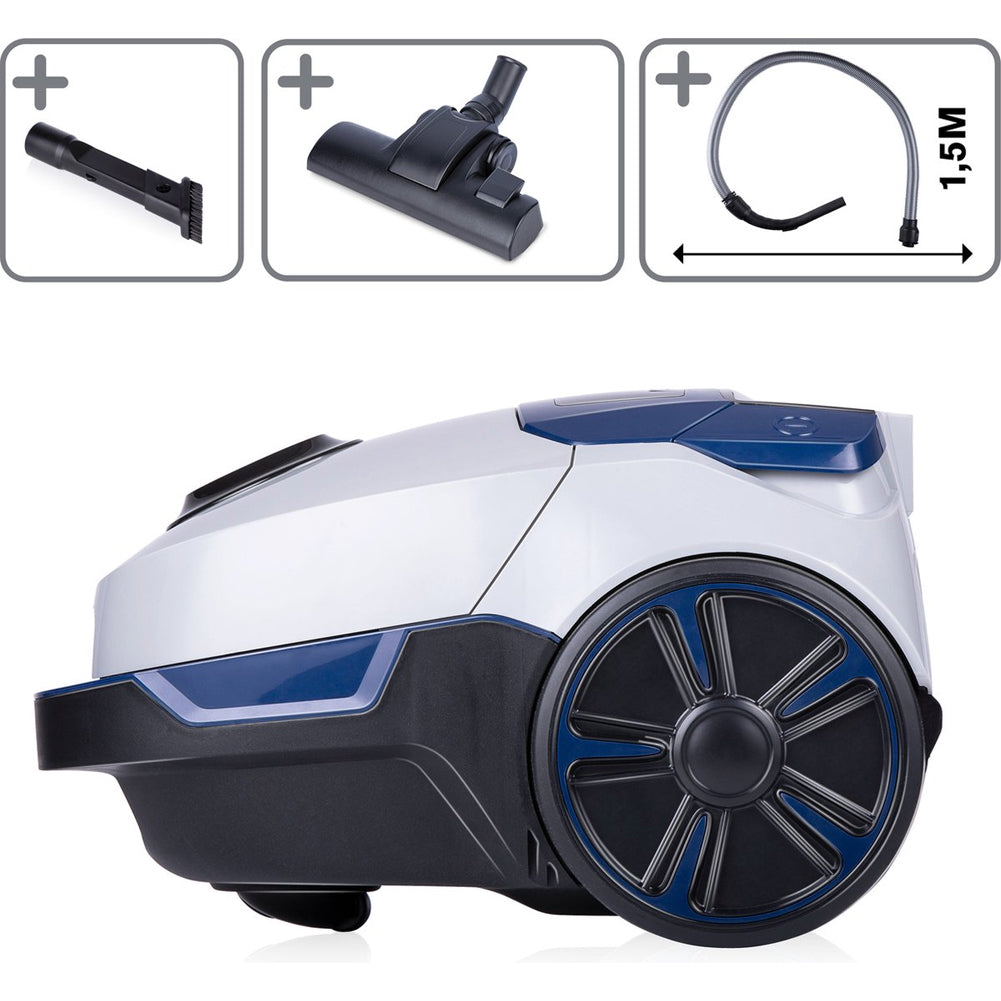 Ampia portata e facile da usare: con il suo cavo di alimentazione lungo 5 metri e una portata di 7,5 metri, è possibile utilizzare facilmente l'aspirapolvere in tutta la casa