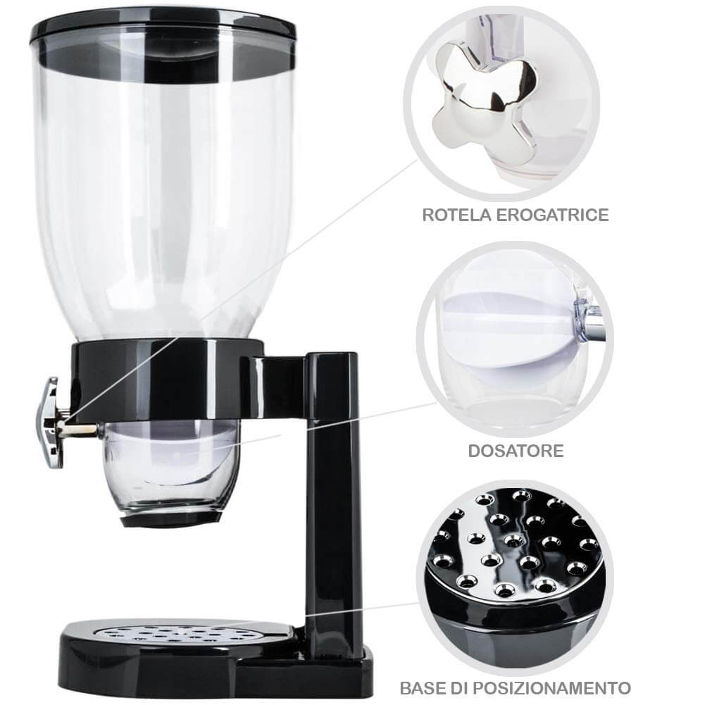 Dispenser Cereali Singolo Contenitore Dosatore Distributore Storage Pasta Nero