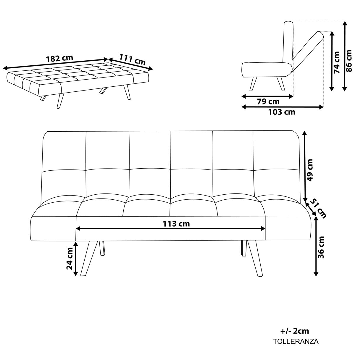 Divano letto 2 posti Vissland con braccioli regolabili Apertura Clic Clac Patchwork