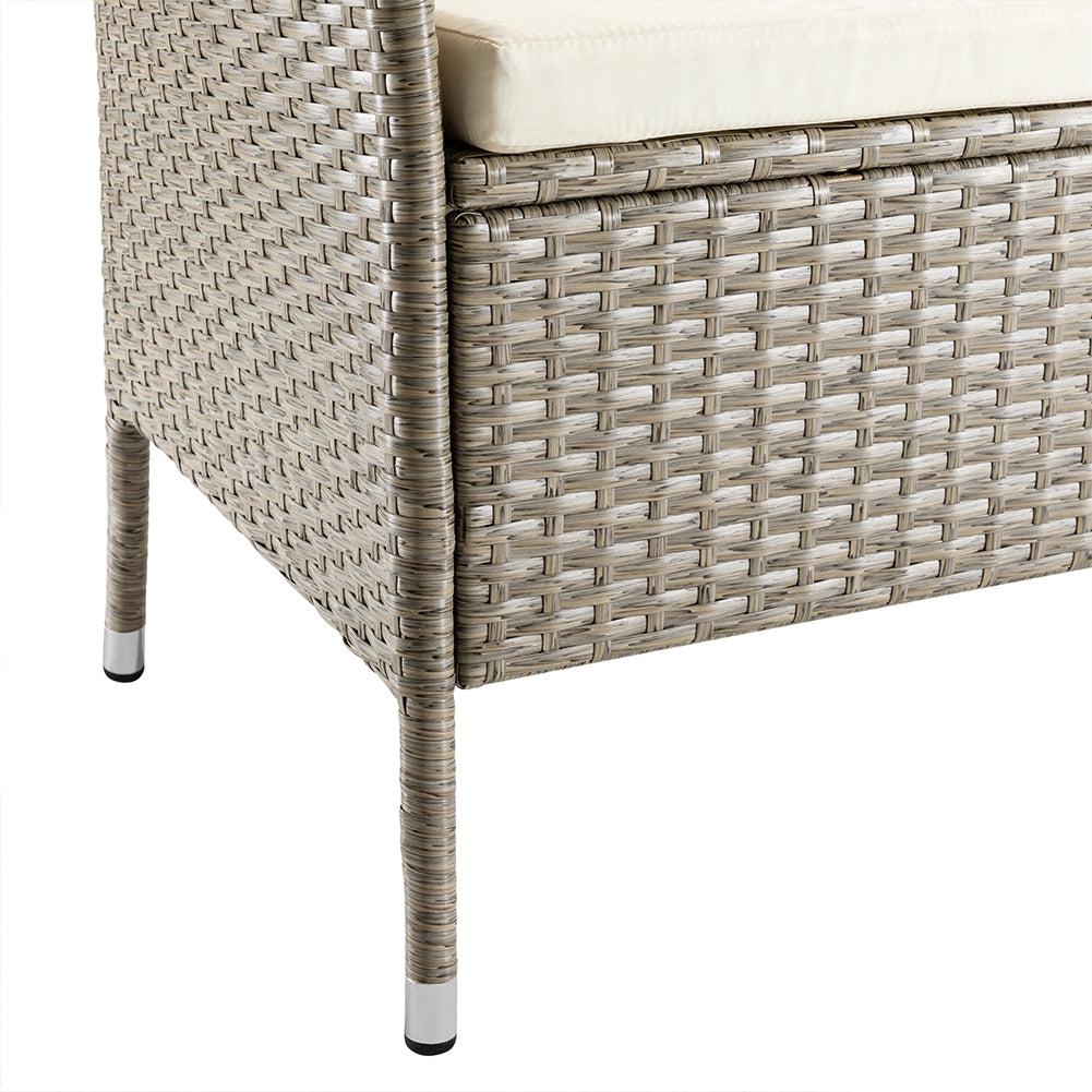 La panca da giardino in polyrattan offre un piacevole comfort di seduta grazie ai cuscini imbottiti ad alta intensità, con spessore di 5 cm, che permette di trascorrere ore piacevoli godendosi il sole estivo.
