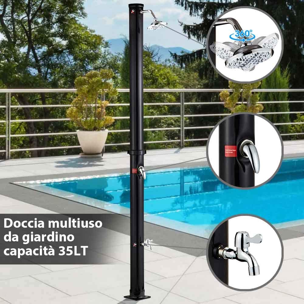 Dopo un bel bagno in piscina, goditi una fantastica doccia calda all'aperto con la nuova doccia solare da esterno di Bakaji.