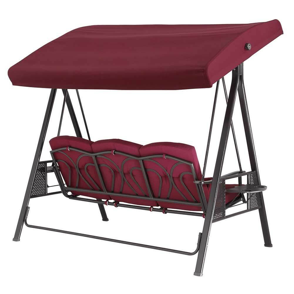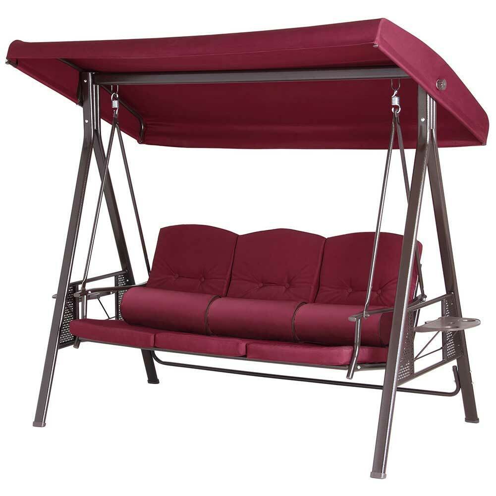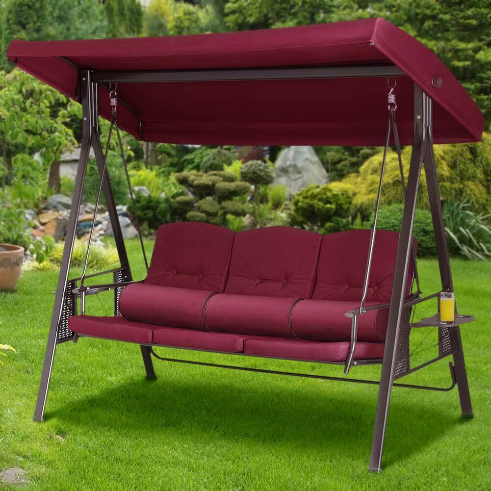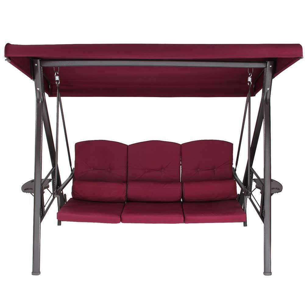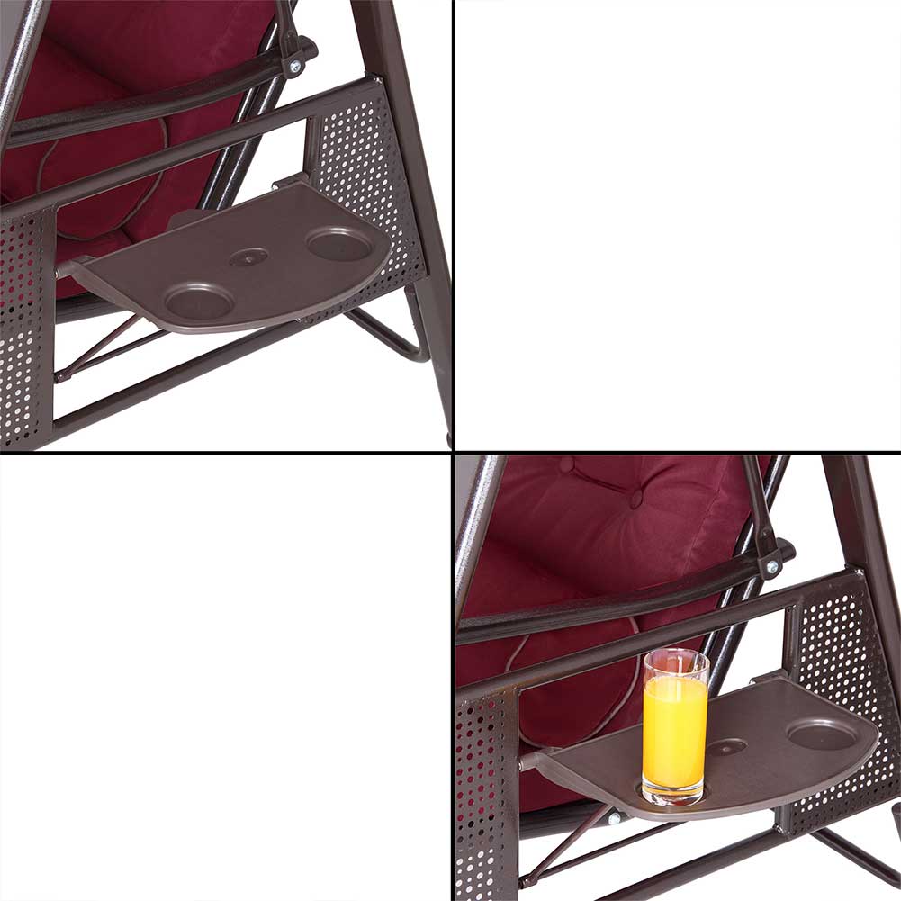 Dondolo Giardino Ibiza 3 Posti con Parasole Cuscini e Vassoi Pieghevoli Bordeax
