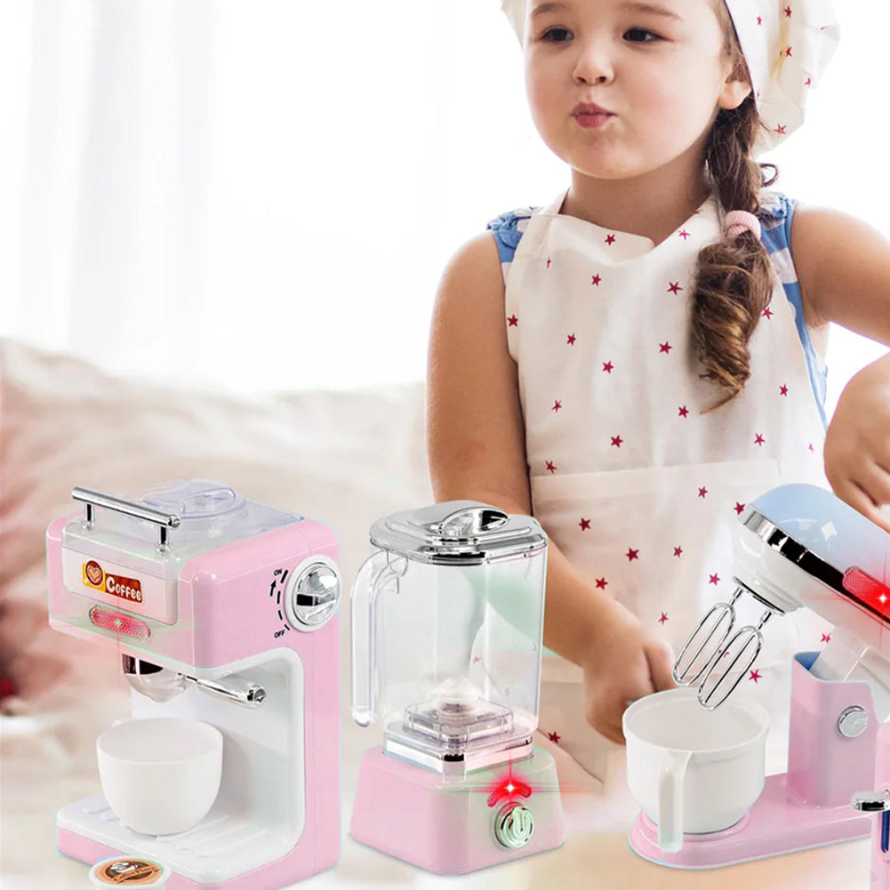 SET ELETTRODOMESTICI GIOCATTOLO: include 1 macchina da caffè con acqua reale, 1 frullatore funzionante e 1 sbattitore con fruste rotanti.