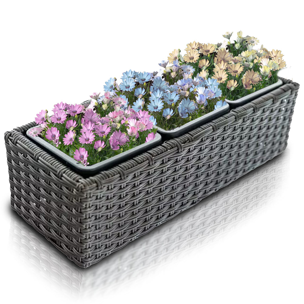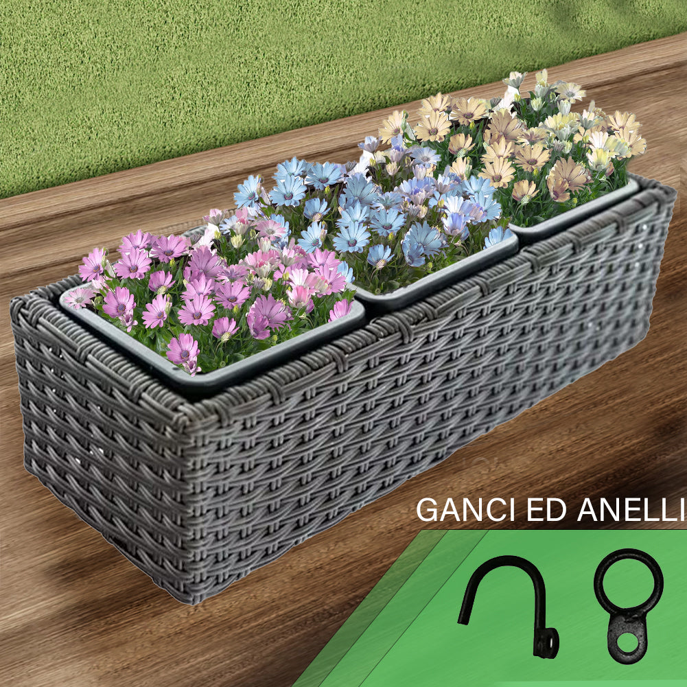 Fioriera Vaso da Giardino Esterno Balcone in Rattan Marrone 3 Scomparti Plastica