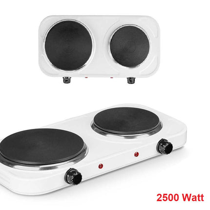 Fornello elettrico 2Piastre Piano Cottura Doppio Portatile 2500Watt Bianco