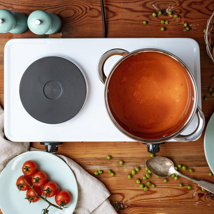 Fornello Elettrico 2500 Watt con 2 piastre separate ( 18.7 e 15.3 cm ) in acciaio smaltato Bianco