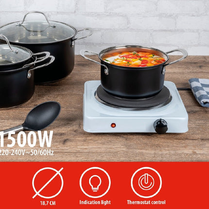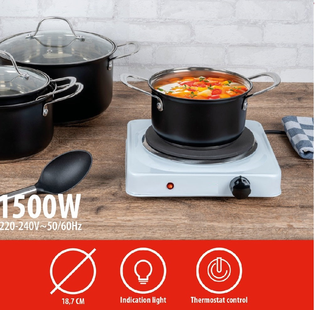 Fornello Elettrico Smaltato Piastra in Ghisa 1500W con Termostato Casa Campeggio