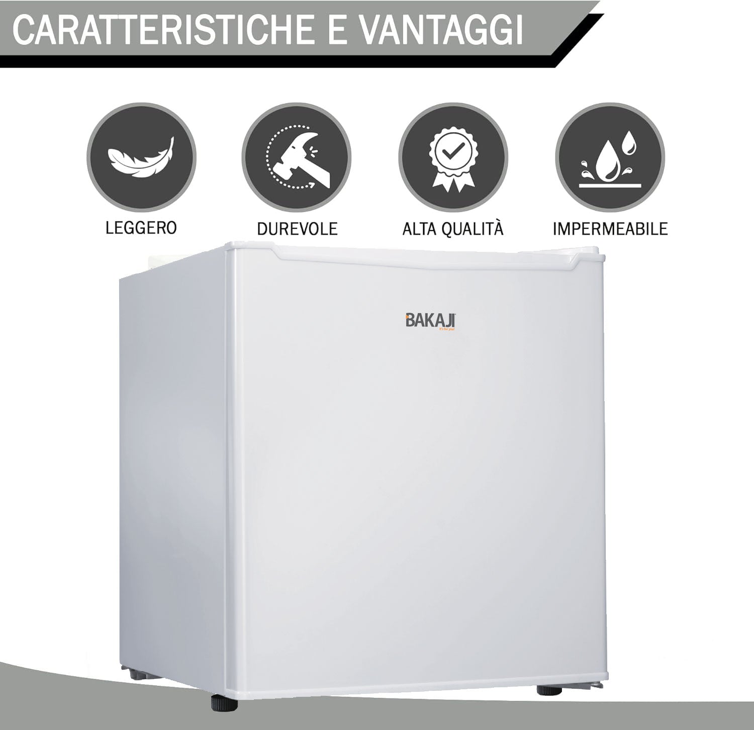 Comodo spazio di archiviazione: il frigo bar BAKAJI TMF-3821 ha una capacità lorda di 45 litri, il che significa che c'è molto spazio per frutta, cibi surgelati, bevande e altri materiali di consumo.