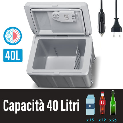1 x Frigorifero Elettrico Portatile 40L Caldo/Freddo Grigio Spina 230V e 12V Grigio