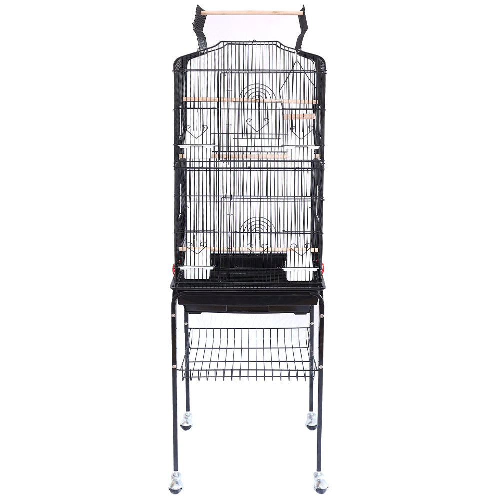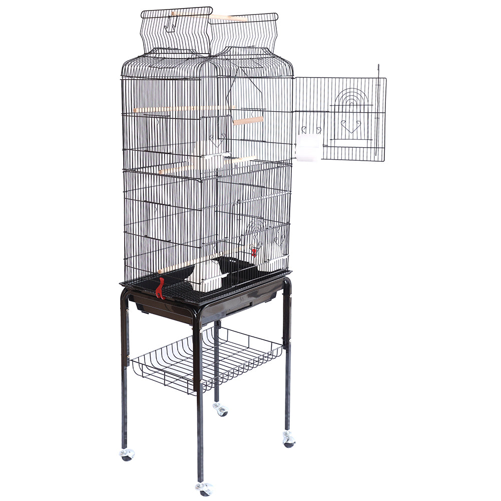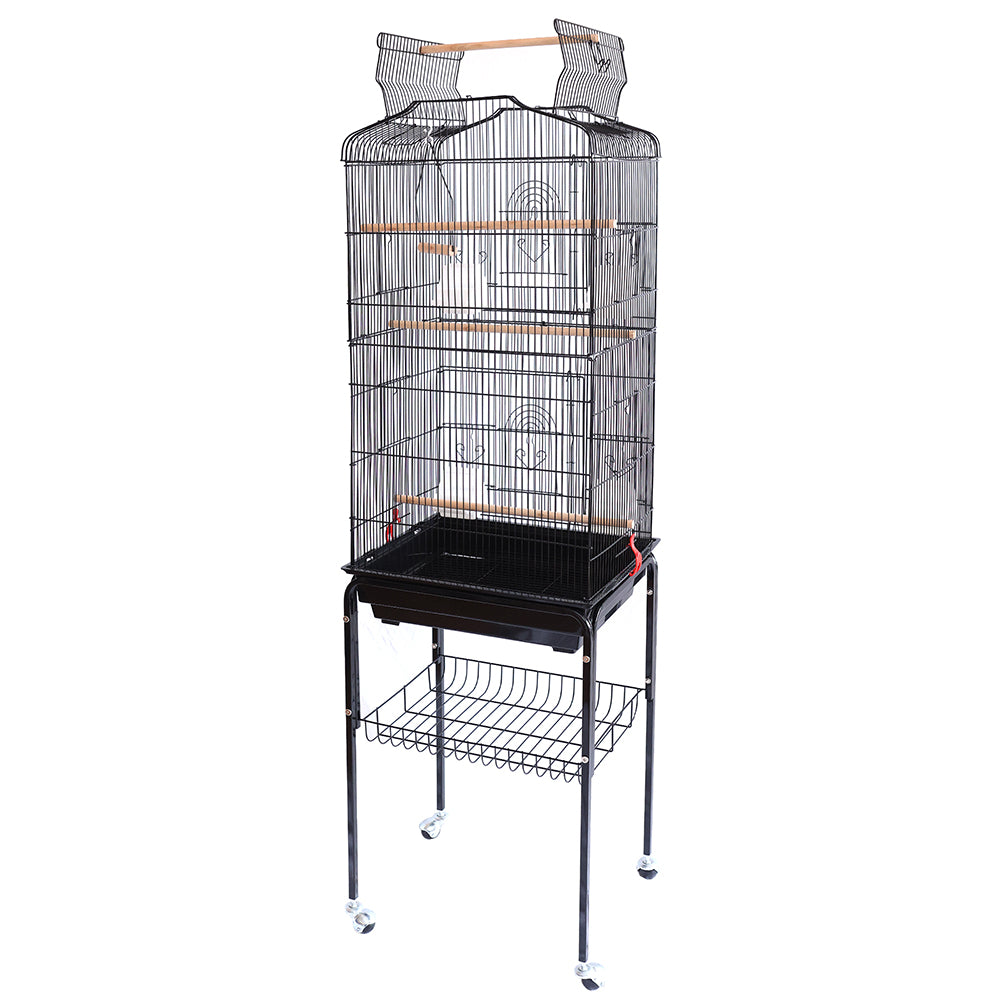1 x Gabbia Voliera per Uccelli Nera per Pappagalli con Tetto Apribile 46x35x148 cm
