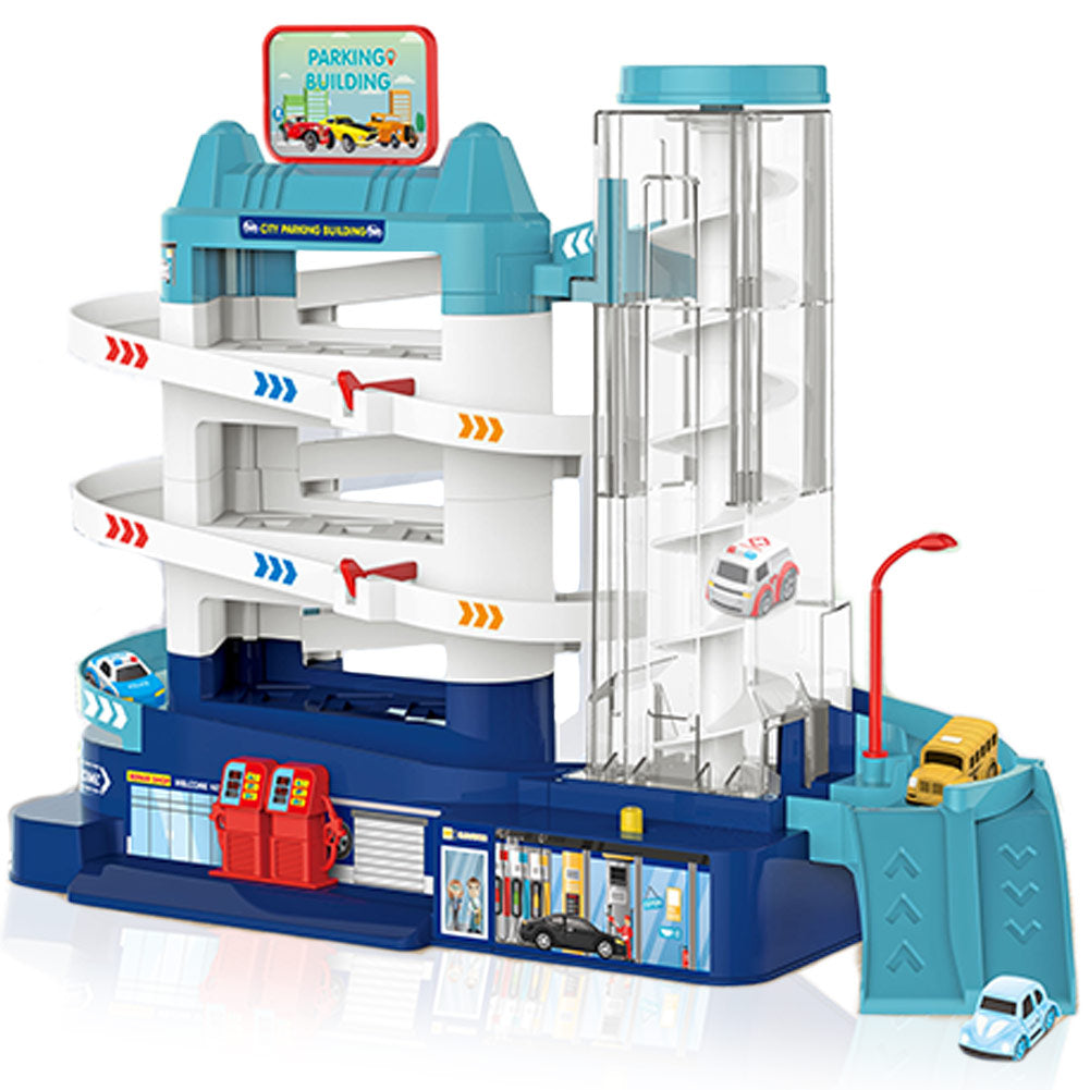 Garage Giocattolo a 3 Livello per Bambini con Rampa Auto e Ascensore Manuale