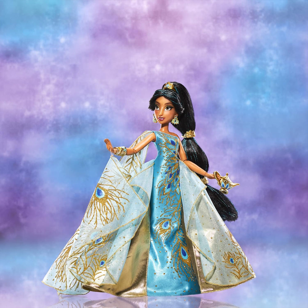 Questa esclusiva bambola da collezione unisce il fascino senza tempo del personaggio Disney con un design contemporaneo, pensato per celebrare Jasmine in tutta la sua grazia.