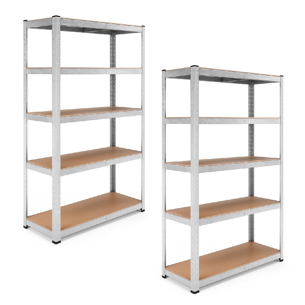 Kit 2 Scaffali Metallo Zincato 5 Ripiani Legno MDF 90x40 H180cm Garage Casa