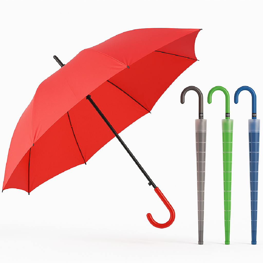 Kit 4 Ombrelli Automatici con Manico Curvo Custodia Antigoccia Colori Assortiti