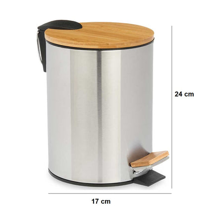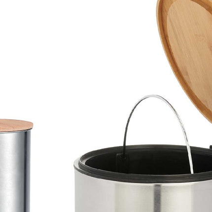 Kit da Bagno Pattumiera 3lt e Porta Scopino Acciaio Bambù per WC Salvaspazio