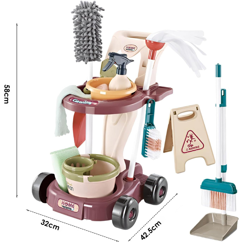 1 x Kit di Pulizia per Bambini con Carrello Scopa Paletta Giocattolo Gioco Educativo