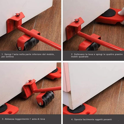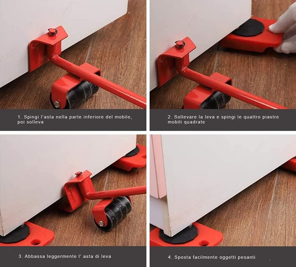 Kit Sposta Mobili con Ruote Sollevatore fino a 600kg Sposta e Solleva Mobili